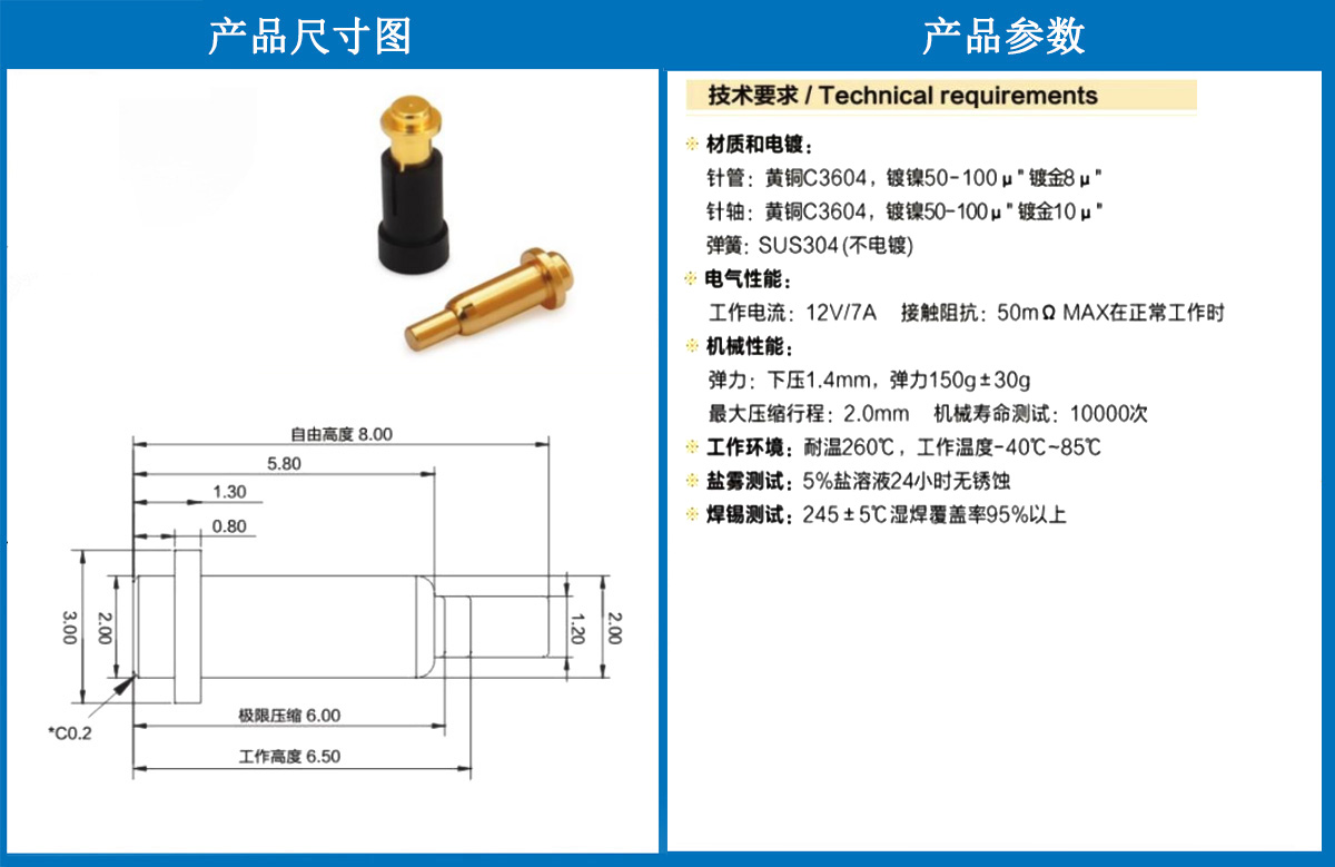 產品介紹:這個針通常用于智能手表,藍牙耳機上的有充電的功能,但是探針總體來說還是測試的