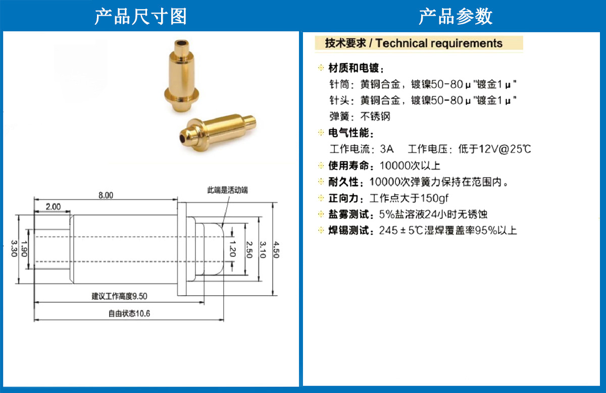 產(chǎn)品介紹:這個(gè)針通常用于智能手表,藍(lán)牙耳機(jī)上的有充電的功能,但是探針總體來說還是測(cè)試的
