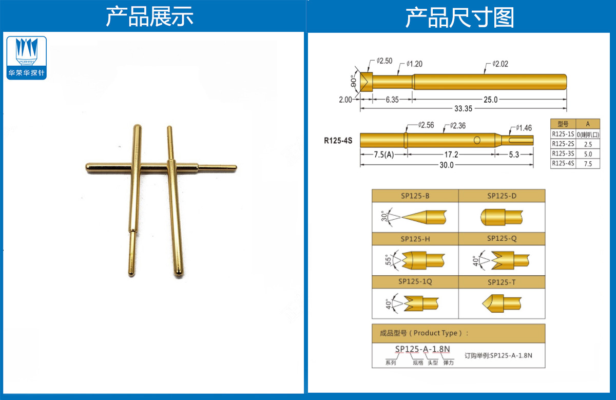 產(chǎn)品簡介:SP125探針、2.02mm測試針、總長33.35mm、彈簧針、測試針、頂針
